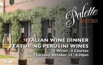 Schedule in some WINE-DOWN time at Palette Bistro while Carlo de Pace of Perusini wines guides guests through four perfectly paired courses.